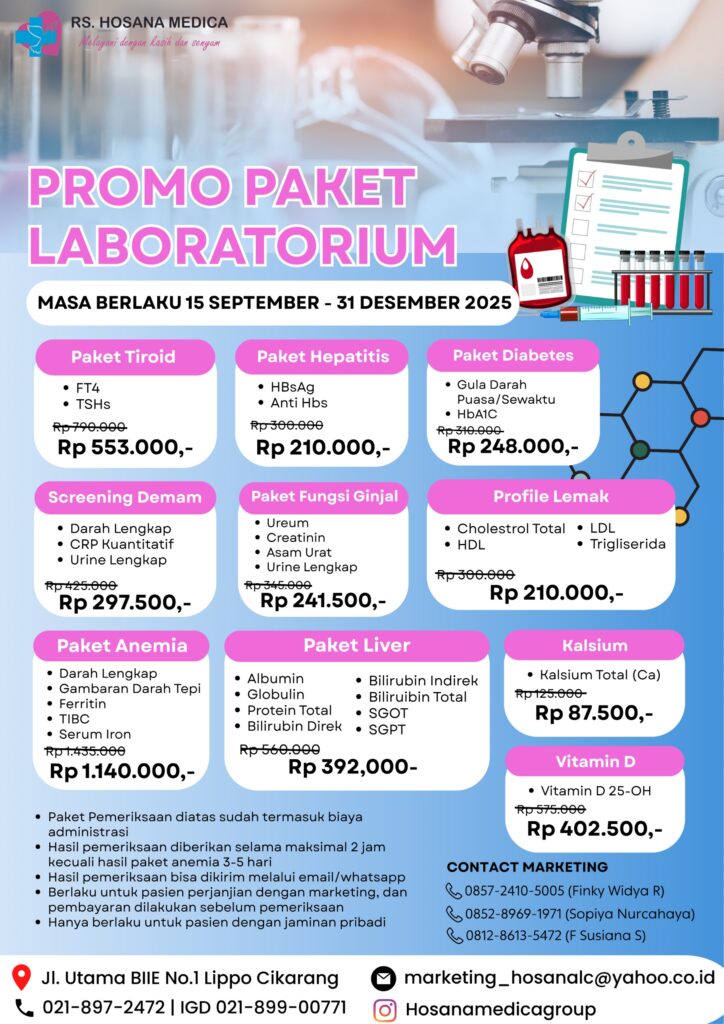 Artikel, Kolom PromosiPROMO PAKET LABORATORIUM Artikel, Kolom Promosi / erikmrpy@gmail.com Segera dapatkan promo paket laboratorium, berlaku mulai 16 September hingga 31 Desember 2025.